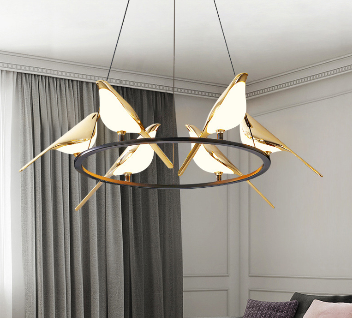 Nordic Minimalist Dining Table Bird Art Living Room Chandelier